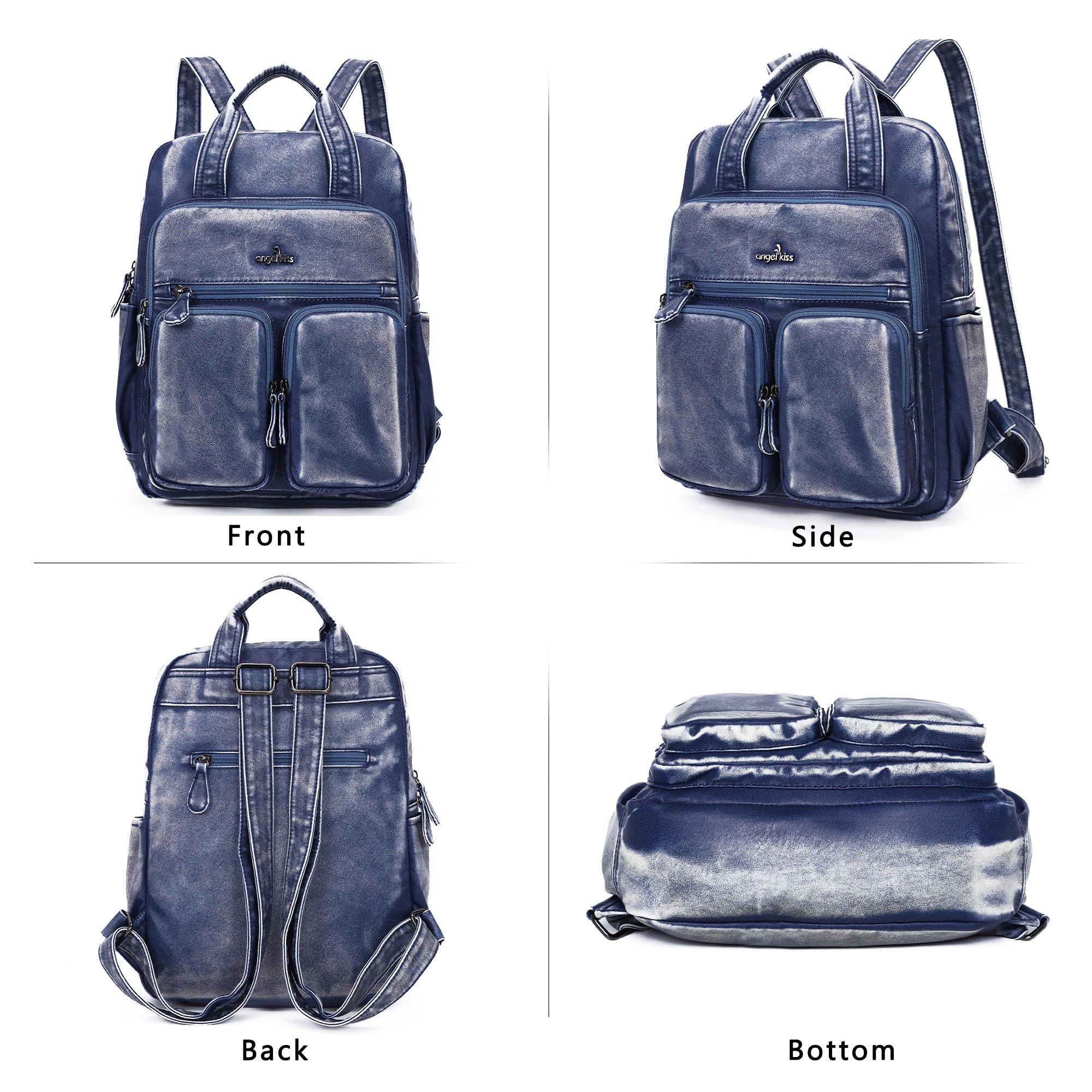 Angel Kiss Backpack Purse for Women Soft Washed Leather Multi Pocket Casual Travel Backpacks…
