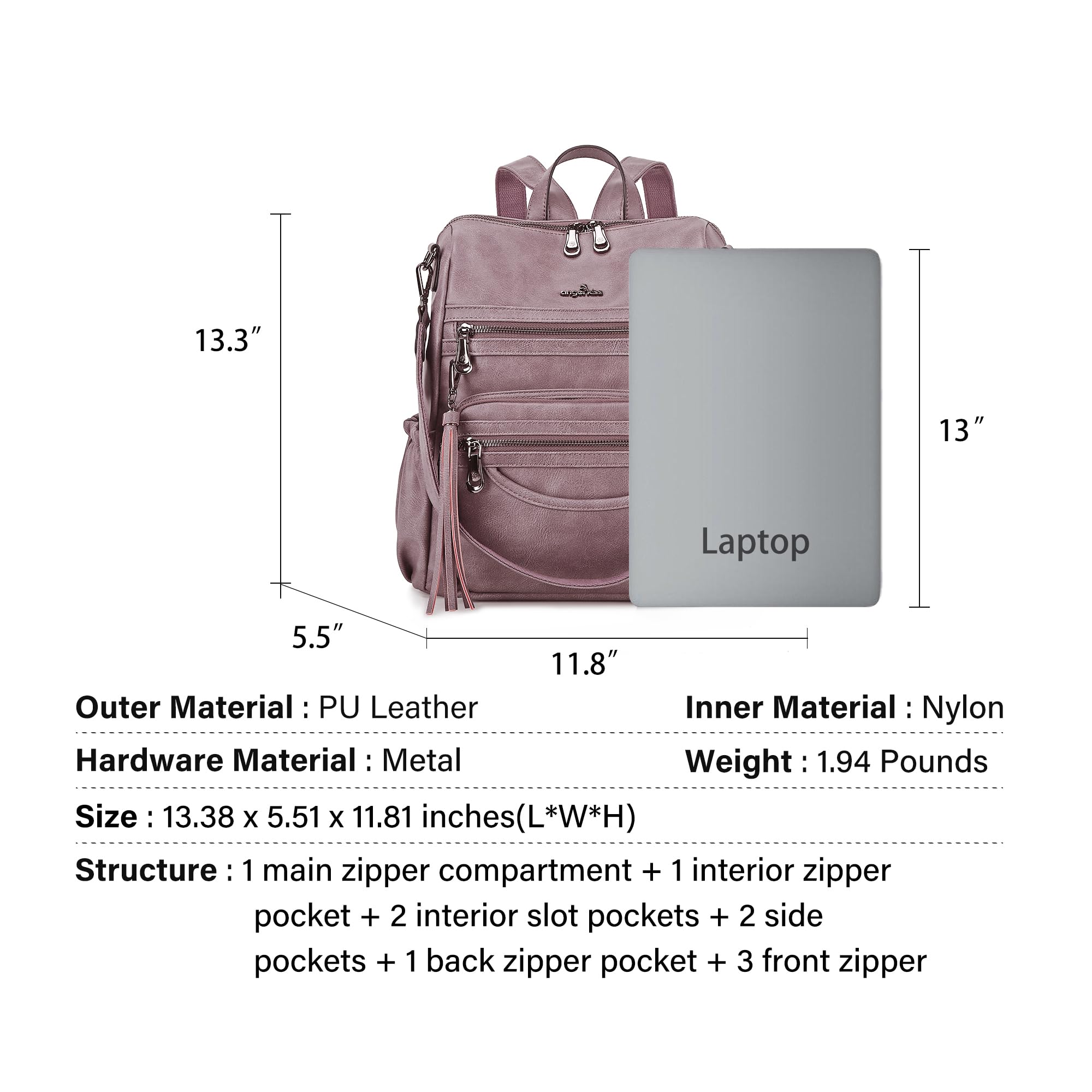 • ❤【Material】- This backpack purse is made of high quality vegan leather,and the stitching is well.It is soft,durable ,multi-pocketed and waterproof.