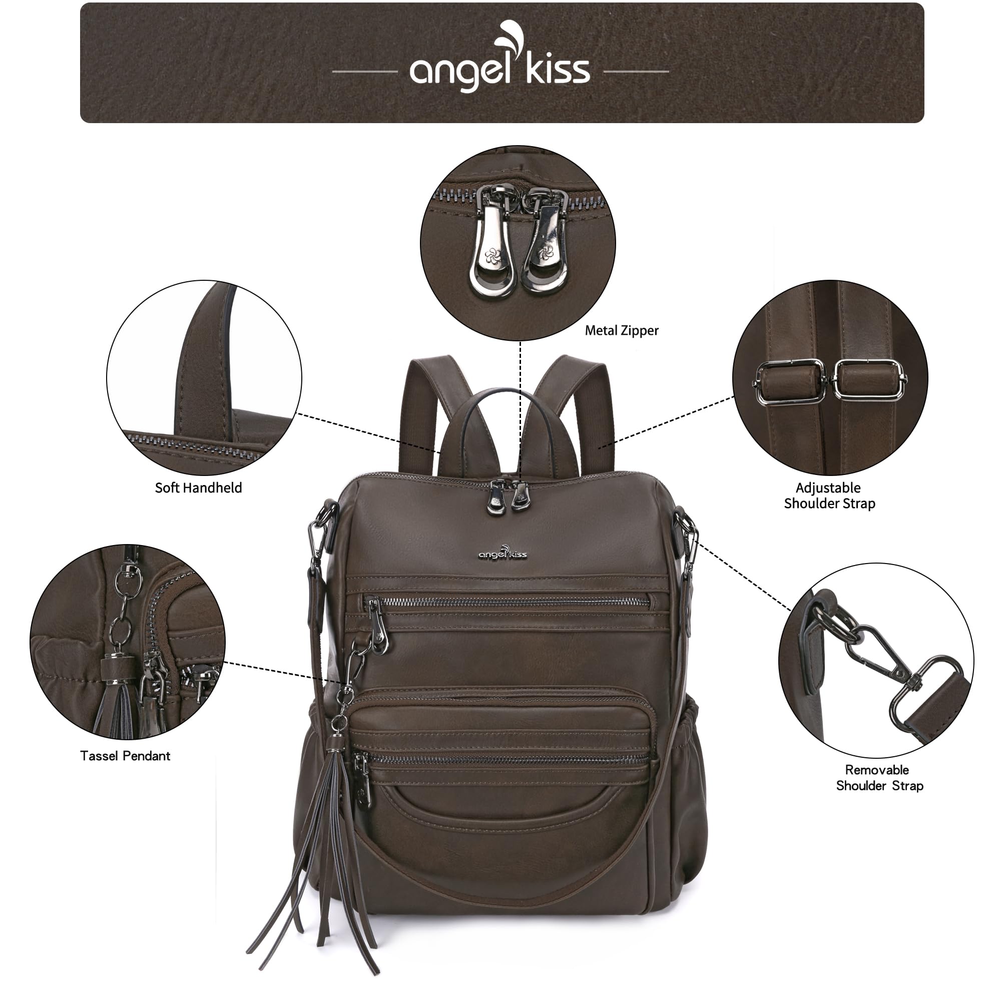 Angel Kiss Women's Backpacks & Purse - PU Leather Zipper Casual Backpacks & Shoulder Bags—